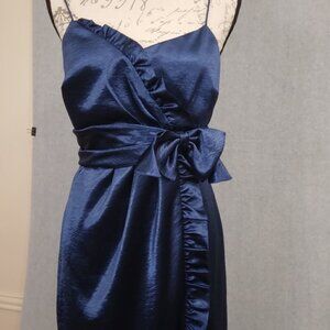 Royal Blue Bow Ruffle Satin Dress Evening Party Dress | Size 8
