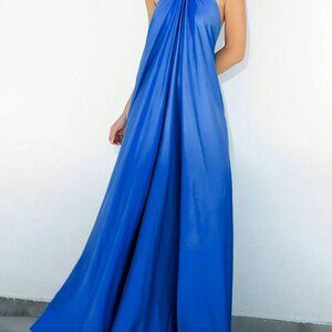 Royal Blue Casual Women's Criss Cross Sleeveless Self-Tie Halter Backless Dress