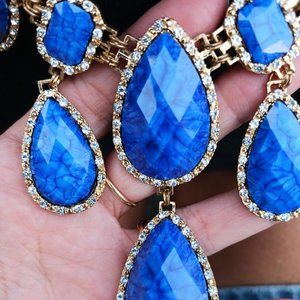 Royal Blue & Cubic Zirconia Tear Drop Statement Necklace
