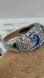 Sterling silver ring, blue enamel jewelry, pavé CZ ring, domed statement ring, elegant silver ring, Art Nouveau style, wave motif ring, cocktail ring, sparkling sterling band, designer-inspired jewelry.
