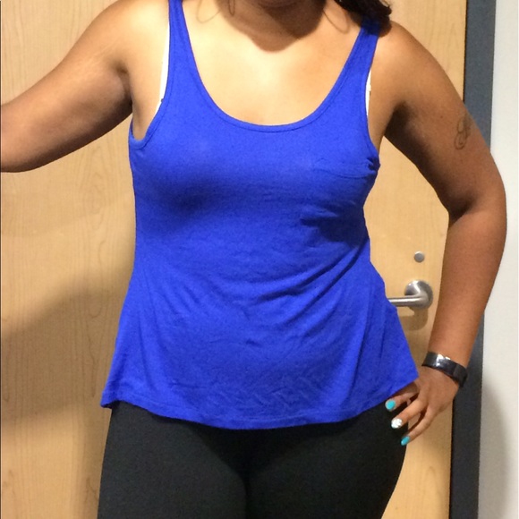 Royal Blue Flowy style shirt w/pocket. Size L. NWOT. Never before worn except to model. Not Brand Listed (used for exposure). Firm offer.