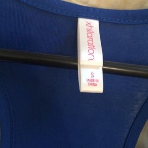 Royal Blue Fringe Tank. Pocket on front. Fringe on bottom. Very comfy. Shows a small amount of stomach. Super fun with shorts!