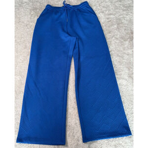 Royal Blue Geometric Embossed Matching Lounge Set Shirt Pants Womens M