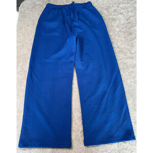 Royal Blue Geometric Embossed Matching Lounge Set Shirt Pants Womens M Excellent condition - see pictures for measurements. Small pull in pants as shown in last picture.