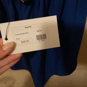 NWT! Bright royal blue halter with stretch back and v cut in front. A little longer in length in back than in front.