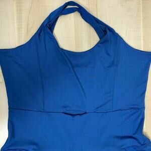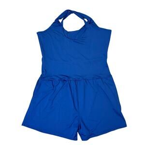 Royal Blue Halter Romper Women’s Size L Stretchy One Piece With Pockets & Cutout