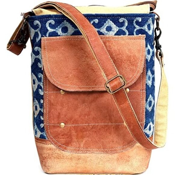 >>superior quality upcycle canvas & cowhide leather crossbody shoulder bag