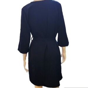 Navy B royal blue t-shirt dress in a lightweight fabric. Features a button-front detail, a belted waist, and a front pocket.