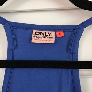 END OF SUMMER SALE!! Never worn blue maxi dress. Sz Large but best for a medium. Spaghetti strap top with racerback. Mid-waist cinch. Super cute for just about any occasion!
