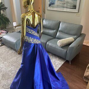 Royal Blue Mermaid Beaded Formal Dress Size 4 Strapless Sweetheart Gown