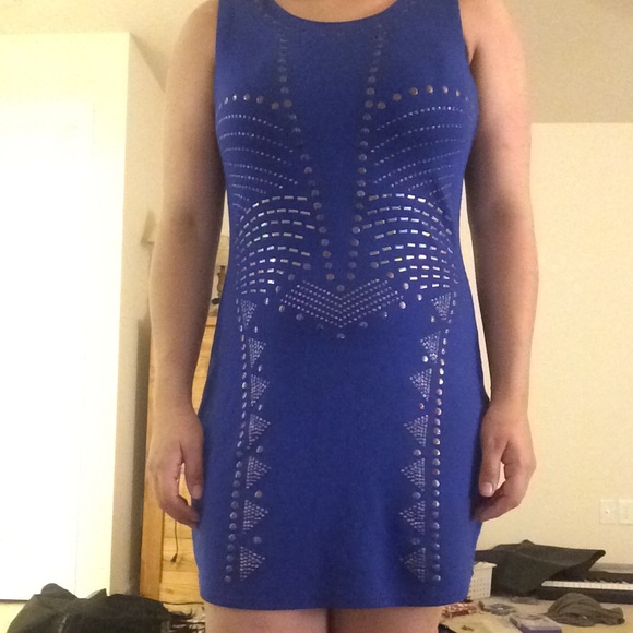 This stunning royal blue mini dress w/ studs is perfect for a date night out or a night out with the girls! Slightly bodycon but not too constricting, this dress will give your body a sexy shape, guaranteed to make you the life of the party. Made by a brand called Ya (Los Angeles). Size L. Purchased at a consignment store, worn 3 times total by me. Will be washed and ironed where possible before shipping. Runs true to size.