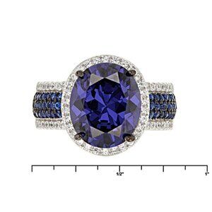 🔥 Royal Blue Oval Zircon Multi Row Elegant Silver Trendy Rings for Women, PD550