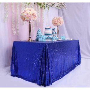 Royal Blue Sequin Tablecloth 50x80” Wedding Party Home Linen Decor ~ New