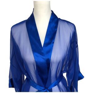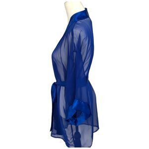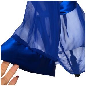 Royal Blue Sheer Open Front Sexy Kimono Cardigan Robe with Satin Trim One Size