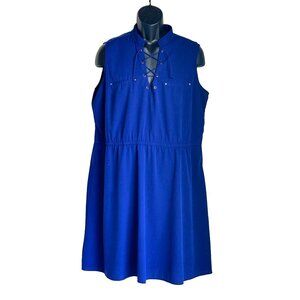 Royal Blue Sleeveless Lace-Up Casual Dress size 1X