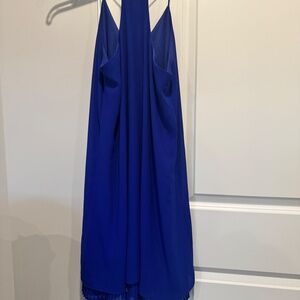 Beautiful royal blue chiffon spaghetti strapped racer back midi dress with pleated detailing at hem. No label but is a size medium.