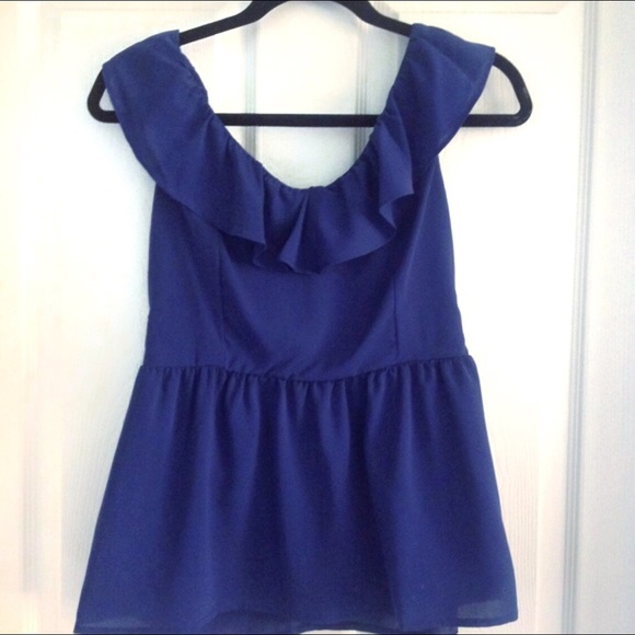 adorable royal blue top only worn a few times; I noticed one minor stain on the front, but it is barely noticeable; could fit a small just fine