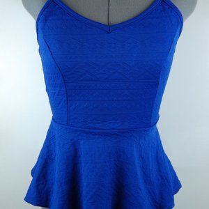 Royal Blue Tribal Peplum Tank Cutout Back Top