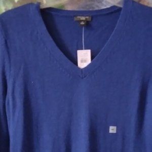 Royal Blue V Neck Ribbed Sweater