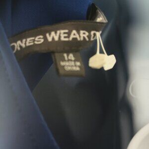 This beautiful Jones wear by Jones New York dress is perfect for any occasion. The royal blue color and V-neckline give it an elegant and sophisticated look. The sleeveless design and knee-length make it comfortable and versatile for workwear, formal events, parties, or even holy communion. The dress is a size 14 and has a fit & flare style, adding a touch of femininity to your silhouette. The solid pattern and blue color make it easy to accessorize with any jewelry or shoes. Whether you're heading to the office or a special event, this dress is sure to make you feel confident and stylish.