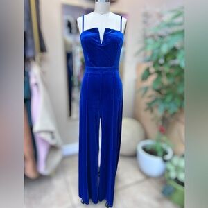 ✨ Royal Blue Velvet Jumpsuit – Adjustable Straps & Back Zipper