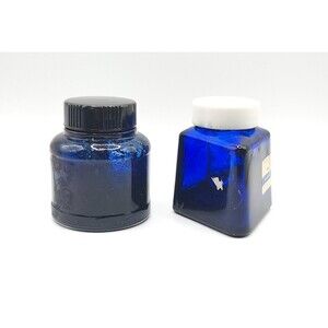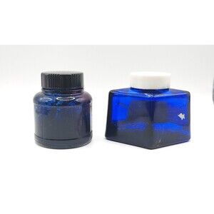 Royal Blue Vintage Glass Fountain Pen Ink Bottles - Lot of 2