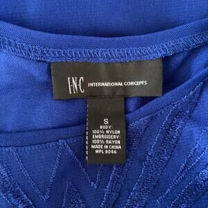 Royal Blue Y2K Embroidered Design Sheer T-Shirt Small 2000s Gen Z Fitted Moody