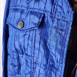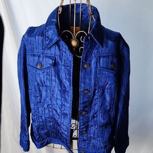 Beautiful Royal Blue textured jacket with 2 front button pockets, buttons at wrist on sleeves, poly rayon blend. Gorgeous color!