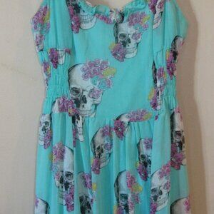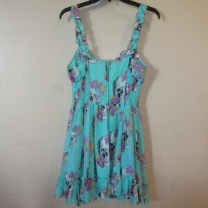 Royal Bones by Daang Aqua Blue Ruffle Dress Skull & Roses sz L Goth Fairy Boho