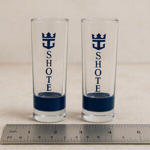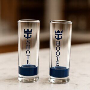 Elevate your glassware collection with this set of Royal Caribbean Shooter Glasses. Crafted in France, they embody elegance and sophistication. Perfectly sized for a delightful experience, these glasses feature the iconic Royal Caribbean emblem, adding a touch of cruise luxury to your home. A splendid choice for collectors and enthusiasts alike.