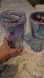 1 doesn't have lid. set of two double-walled tumblers with vibrant wave designs. Features red, purple, and blue colors.