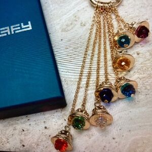 Royal Caribbean Effy Jewelry Bell Charm Complete Set is a stunning collection of small multicolor metal bells in a gold finish. This set includes 8 charming bell pattern designs. This is designed for women, this collection is perfect for those who appreciate unique and whimsical decorative collectibles, and is ideal for adding a touch of magic. With its enchanting design and high-quality craftsmanship from the Effy brand, this bell charm set is sure to delight collectors and enthusiasts alike. Color scheme red, yellow, teal, shimmer, green, blue, purple and light blue. Attaches easily to any tote or purse. Purse not included. You will receive items separately you can put together yourself as seen in second picture. Preowned. Never Used.