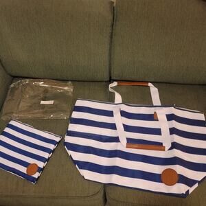 Royal Carribean NEW Tote & small pouch logo blue white striped handle BEACH