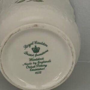 Bottom stamp: Royal Cauldon Bristol Ironstone Woodstock "Made by England's oldest pottery established 1652."