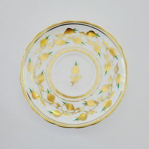 There are no cracks or chips, however there is CRAZING however is very difficult to see, camera was unable to capture it. There are also several dark spots on the bottom of the saucer (see pic).