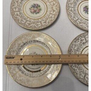 Royal China Inc Plate Warranted 22K Colonial Gold set (4) Bread 7.25” 6” Vintage