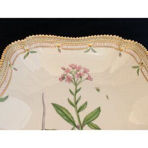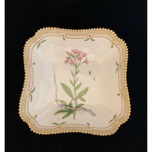 Exquisite Royal Copenhagen Flora Danica porcelain square serving bowl, pattern #20/3510, featuring the hand-painted botanical Dentaria Bulbifera motif. This rare piece from 1964 is finished with a delicate gilt edge, showcasing the exceptional craftsmanship of Royal Copenhagen’s most prestigious and collectible series.
