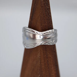 Royal Coronation Spoon Ring Size 11 Floral Leaf Stainless Steel Polished Vintage