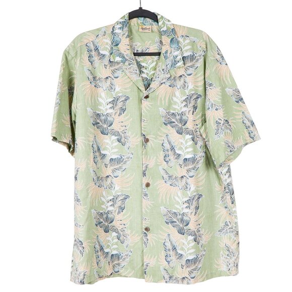 Royal Creations Hawaiian Shirt XL Men 90s Green Hawaii Tropical Palm Leaves Camp
