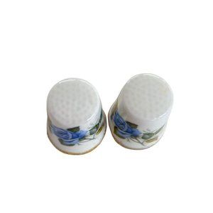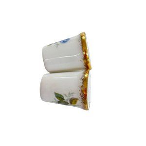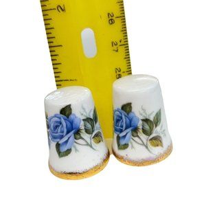 Royal Crown Porcelain Decorative Thimbles Set of 2 Blue Rose Gold Trim