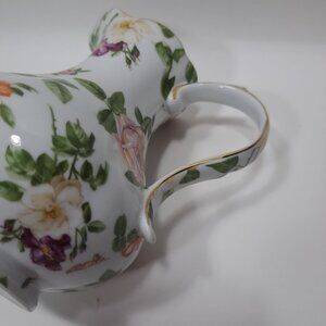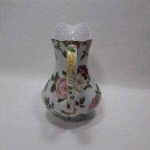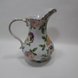 Royal Danube Flower Floral Pitcher Cabbage Roses Gold Trim Porcelain Vintage