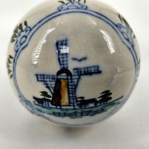 Royal Deft Blue Ware Dutch Holland Windmill Ceramic Christmas Ball Ornament 3"