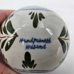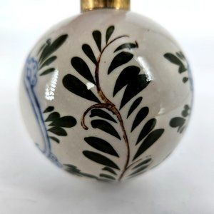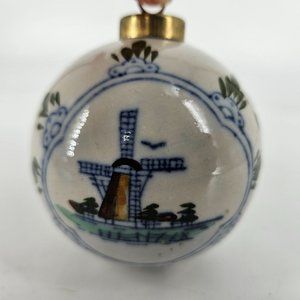 Vintage Royal Deft Blue White Ware Hand Painted Dutch Holland Windmill Ceramic Christmas Ball Bauble Ornament 3" Brass Hanger Top