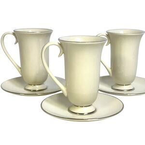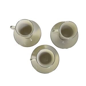 Elevate your coffee experience with this exquisite set of 3 Royal Devon Triomphe retired 'Christmas' platinum trim Irish coffee mug and saucer set. The dimensions are: