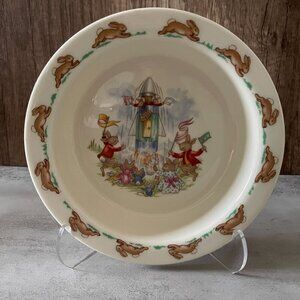 Royal Doulton Bunnykins Blast Off Rocket Launch Child's Vintage Cereal Bowl 6.5"