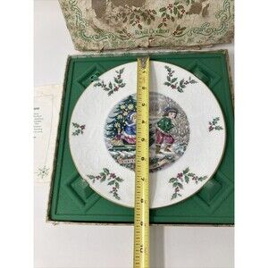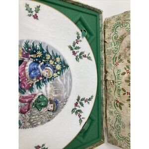 BOX IN VERY ROUGH SHAPE. Plate inside box is nice with no chips or cracks but a little discoloration on back. See photos