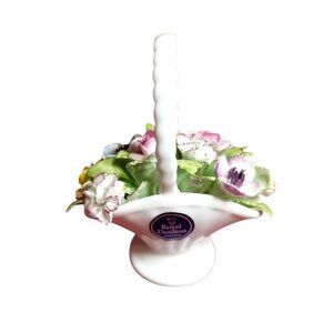 Royal Doulton England Bone China Basket of Flowers . Appears to be from 1960's. Stamp on bottom was changed in the 70's. Please review pictures. Overall great condition. Measures 4 1/2" tall x 4" wide. x 2" deep.