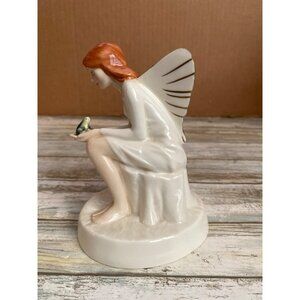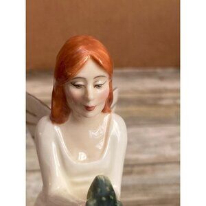 Step into a world of magic with this enchanting Royal Doulton “Fairy Spell” figurine (HN 2979) from The Enchantment Collection. Designed by Adrian Hughes and issued in 1983, this exquisite hand-made, hand-decorated ivory bone china piece depicts a graceful fairy with fiery red hair, delicately seated while holding a small toad in her hand.