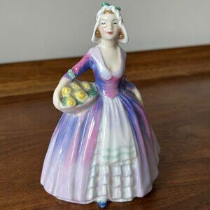 Gorgeous, hard-to-find Royal Doulton "Janet" M75 miniature 4-inch-tall lady figurine made in England of bone china. I believe this was made sometime before the 1950s. RdNo 778640.