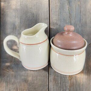 Royal Doulton Lambethware Nutmeg Ceramic Sugar Bowl And Creamer Set England VTG